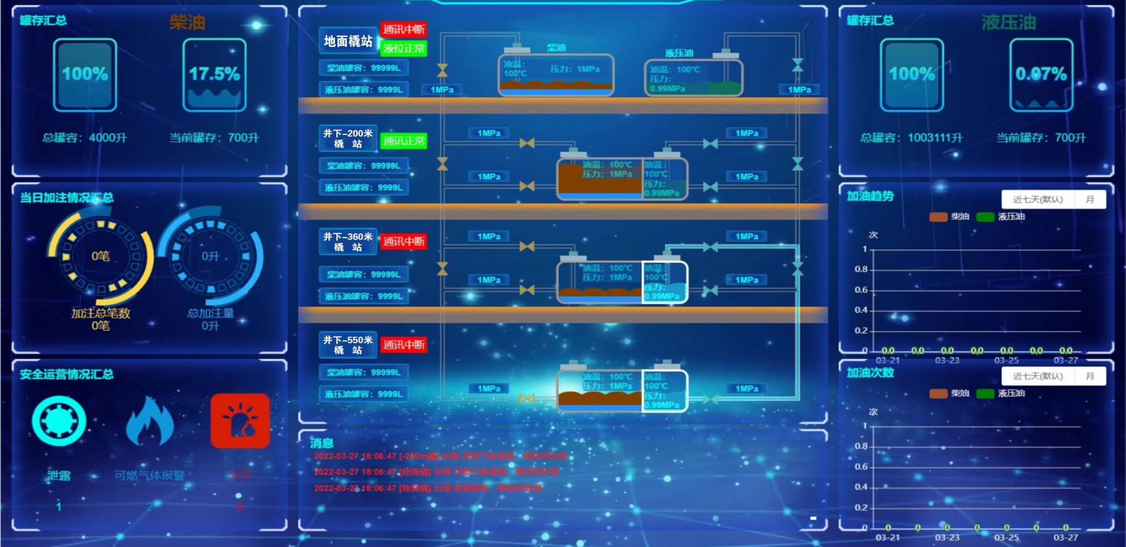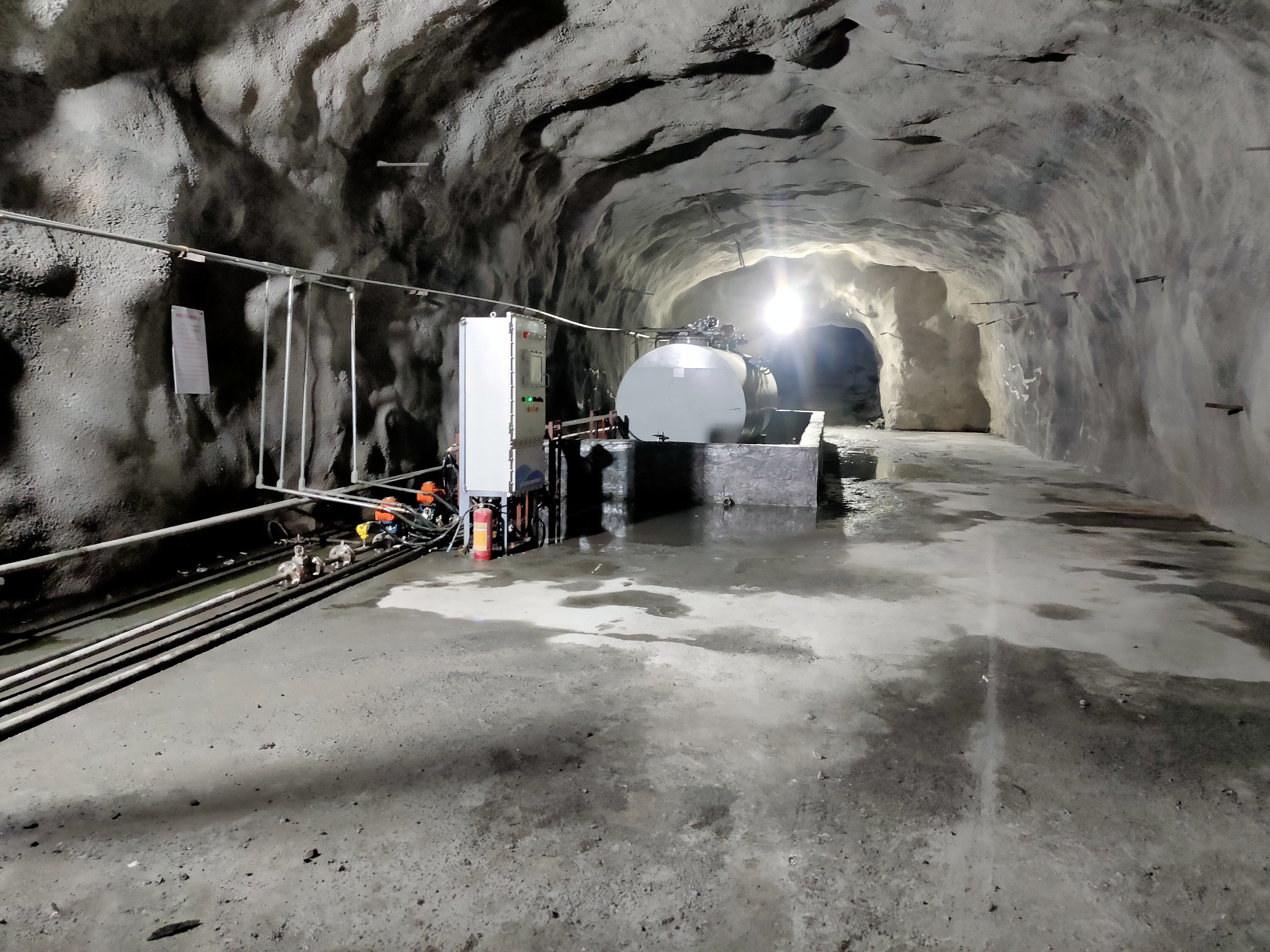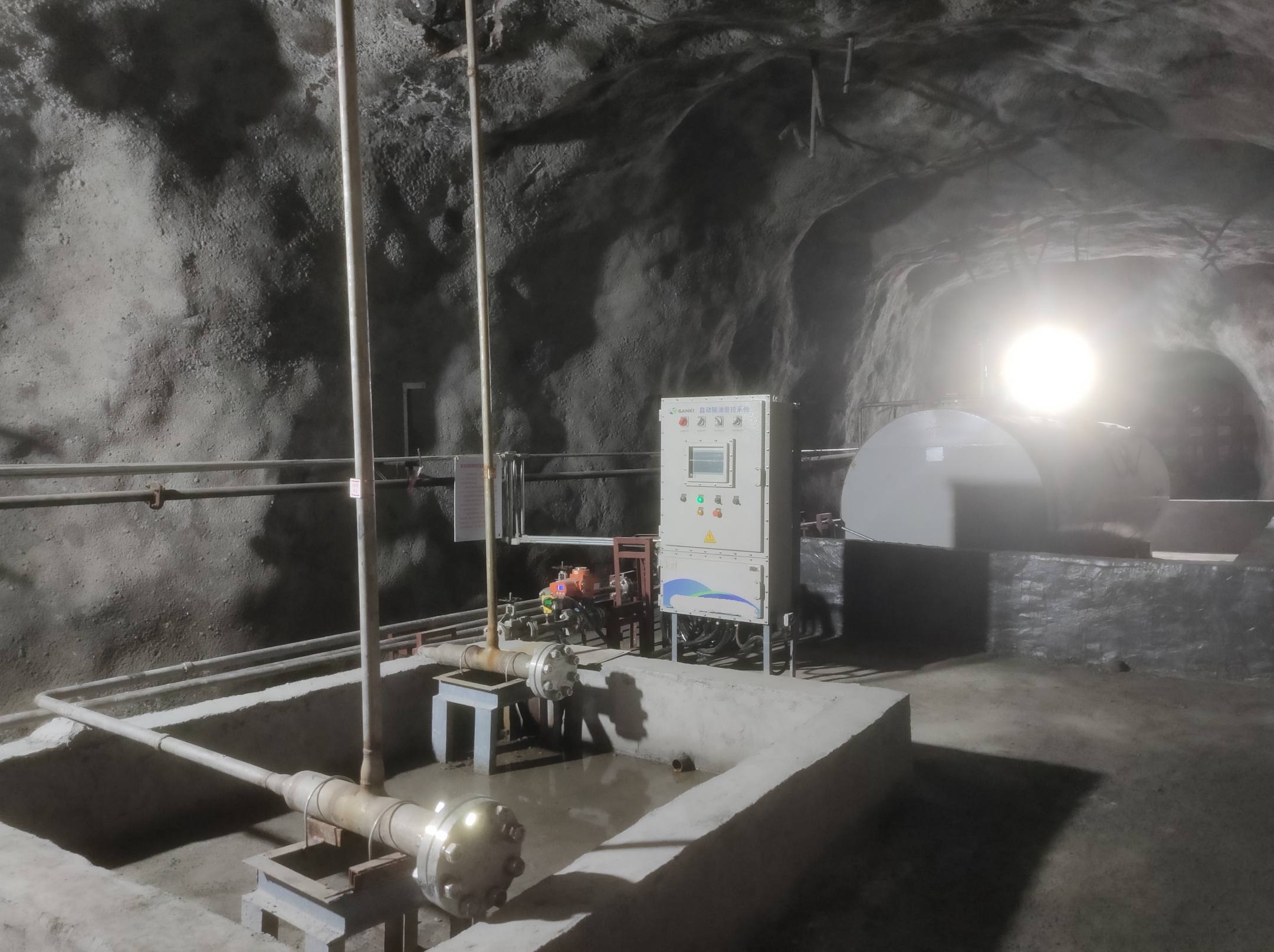 凡口鉛鋅礦井下680米智能供油系統(tǒng) 目前正有序施工中, 預(yù)計9月底完工并投入使用。該項目為全國首創(chuàng), 由韶關(guān)企業(yè)進行技術(shù)攻堅 并申請多項國家專利, 擬申報吉尼斯世界紀錄 “全球最深的智能供油系統(tǒng)”。 凡口鉛鋅礦井下智能供油系統(tǒng) 需在地面設(shè)置橇裝加油裝置, 并分別在地下 330米、480米和680米處 建設(shè)智能化供油系統(tǒng), 通過鉆孔鋪設(shè)輸油管線, 將油品從地面輸送到井下。 地下330米智能加油點, 目前已進入收尾階段, 現(xiàn)場有兩根 從地面裝置接下來的輸油管, 用于工程車加油, 另一邊也有兩根輸油管輸送到 地下480米和680米的智能加油點。 別看油管很細,鉆孔不大, 但施工難度并不小, 全長3千多米的輸油管, 垂直打孔偏差不能超過1米。 作為亞洲最大的 單體鉛鋅銀礦生產(chǎn)基地, 凡口鉛鋅礦 有井下工程車輛和設(shè)備100多臺, 井下用油量大。 井下智能化供油系統(tǒng)啟用后, 不僅解決井下用油安全、環(huán)保風(fēng)險, 同時降低生產(chǎn)用油成本, 推進凡口鉛鋅礦建設(shè)智能化礦山, 實現(xiàn)“無人開采”。 如果鉆孔偏差太大,就找不到鉆下來的孔,影響輸油管道的布設(shè),增大成本。3千多米有5千多個焊接點,所有的焊接口都要達到高壓管道的焊接要求,這個項目是全國首創(chuàng),在全國所有礦山企業(yè)中,我們是首次使用通過輸油管道往井下輸油,并且實現(xiàn)智能控制的方案。 這個月底把地下330米加油點完工,開始加油,9月底把底下480米和680米開通使用。希望通過這個項目打造創(chuàng)新科技的韶關(guān)樣板,把先進的經(jīng)驗和技術(shù)推廣到全省、全國乃至全球。